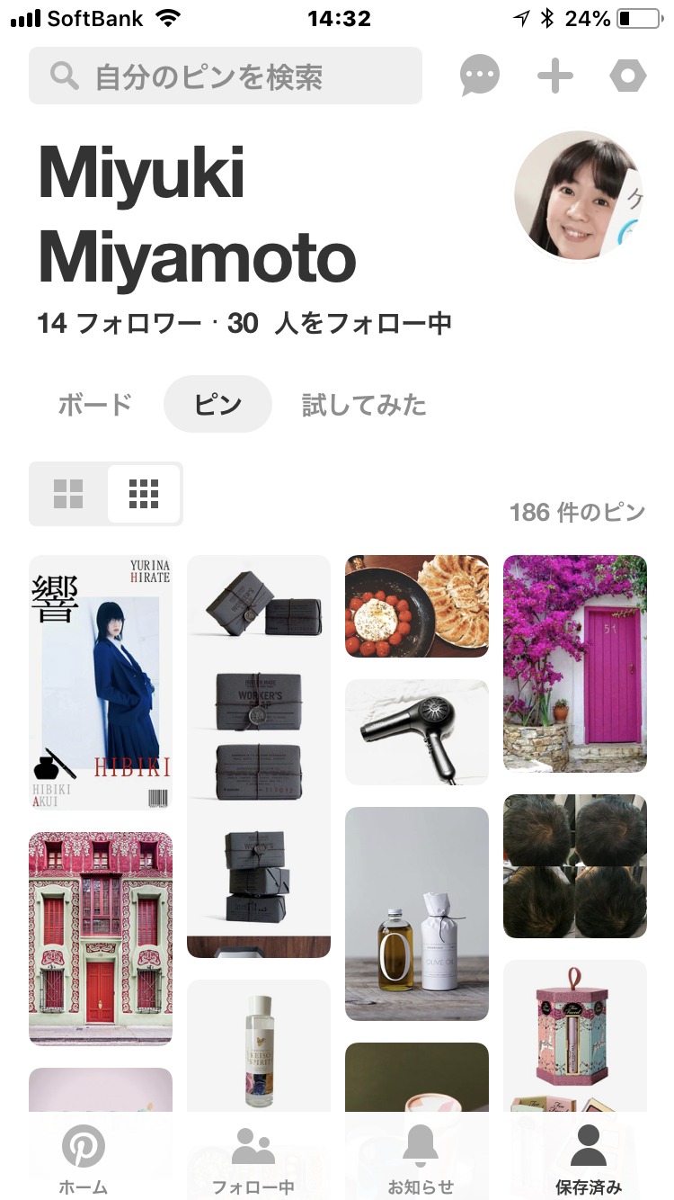 意外なことに私がハマっているのはピンタレスト。↓これ私のピンタレストの画面です。