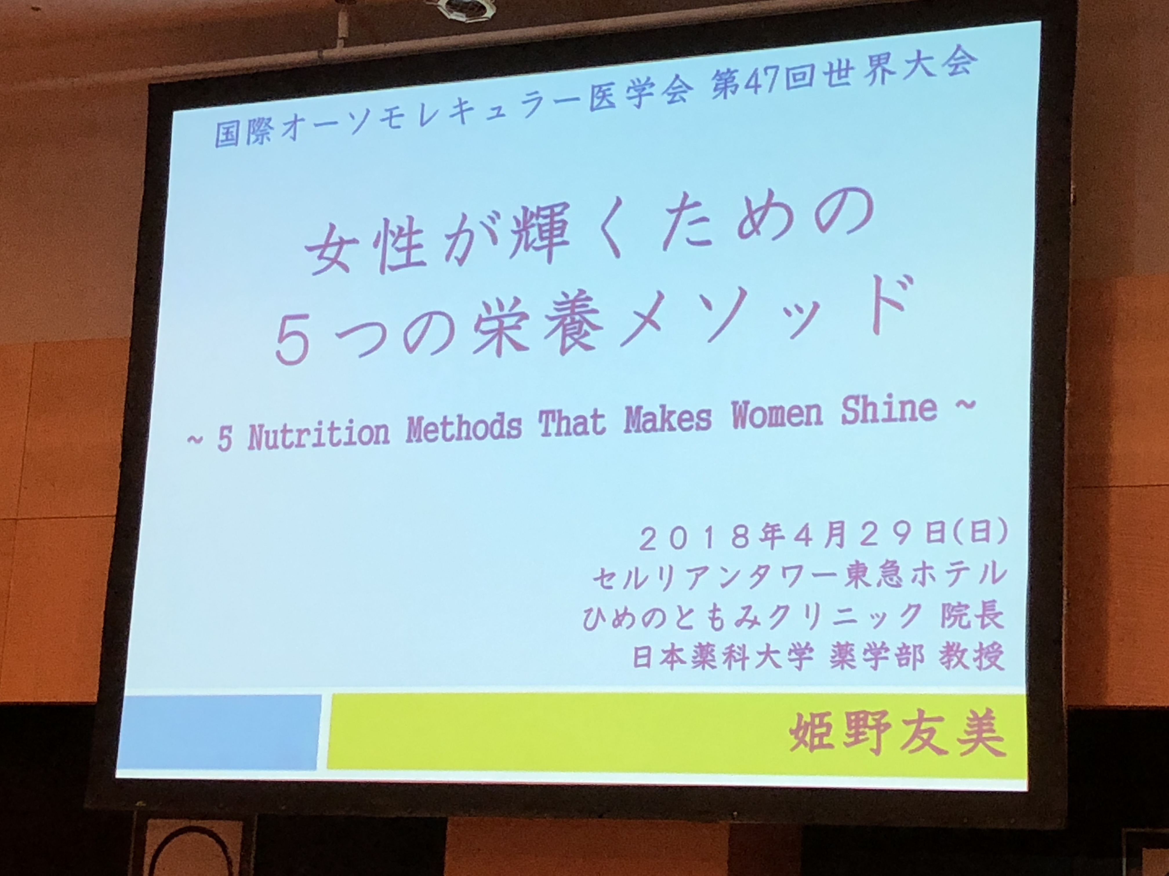 オーソモレキュラー医学会世界大会大成功を心よりお喜び申し上げます。そして貴重なご講演をありがとうございました。