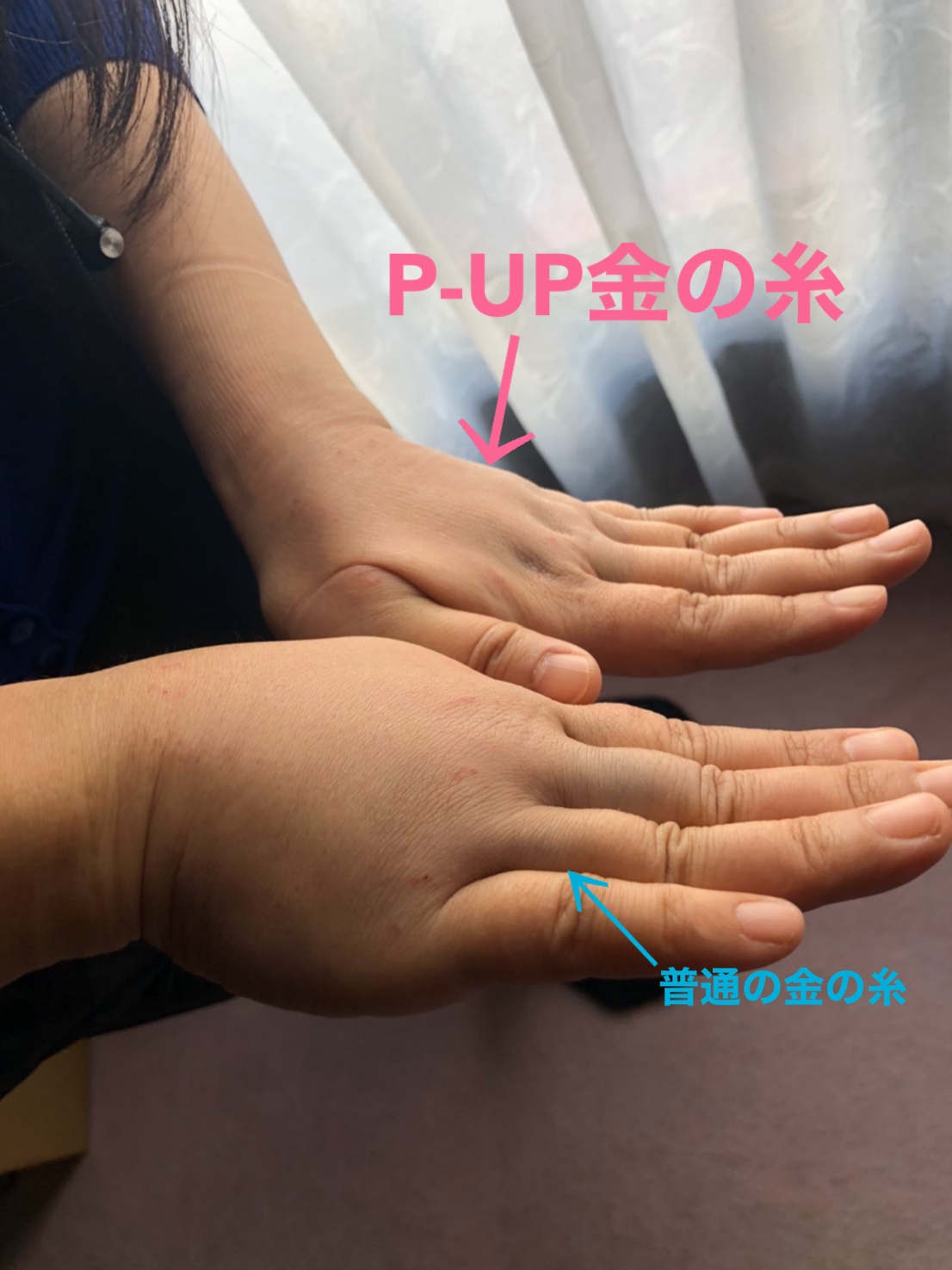 という事でまずは世界初のP-UP金の糸人体実験😆