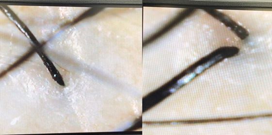 というコンセプトなので実際にシャンプーして、頭皮の状態を見比べてみました。結果はじゃん!↓